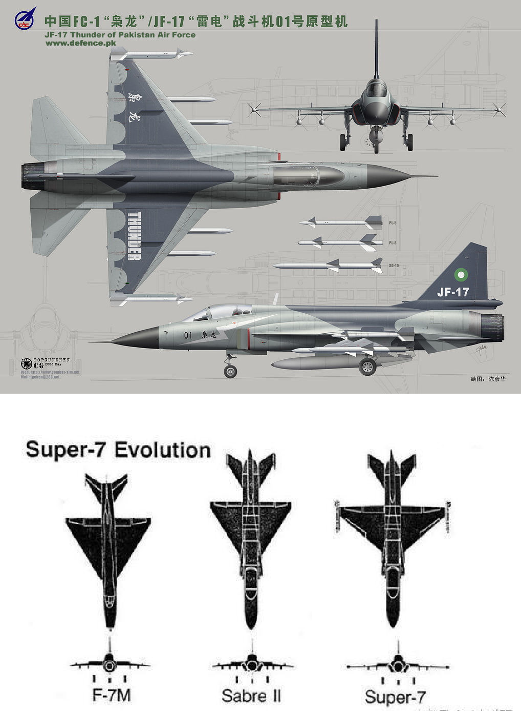 米格-21衍生了超-7衍生了JF-17(来源:看美西网站合成图)