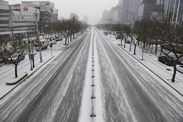中共病毒重创中国经济。图为2020年2月5日空荡荡的北京街景。(GREG BAKER/AFP)
