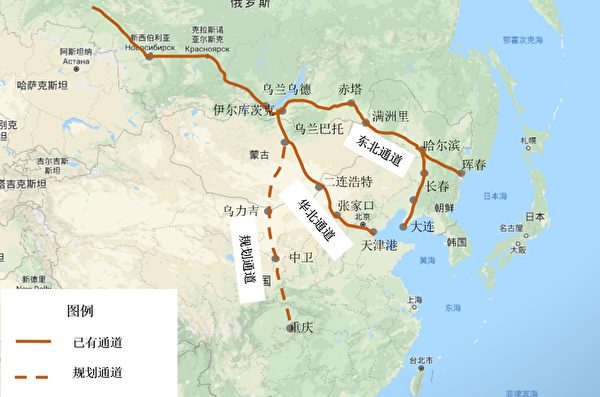 阿拉善盟发改委在2020年5月“十四五”申报文件中,用图片说明了中蒙俄经济走廊现有两条通道的现状。图为文件附录的说明图片。(大纪元)
