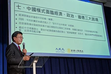 美国普林斯顿大学博士程晓农主讲“2020:中国经济进入全面衰退”。(黄小堂/大纪元)