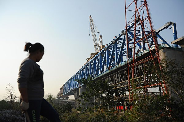 图为安徽省合肥市,一位工人在高铁施工现场。