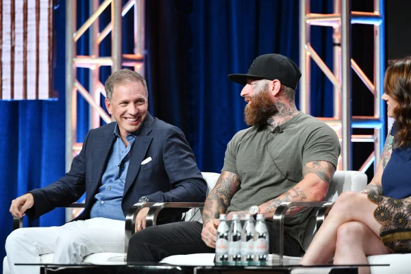 参加隐形富豪真人秀的亿万富翁Glenn Stearns(左)和部分节目参与者。(图片来源:Amy Sussman/Getty Images)