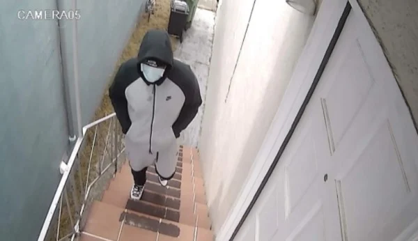 遭盗窃华人家庭家中监控拍到盗匪入屋时的身影。(监控录像截图)