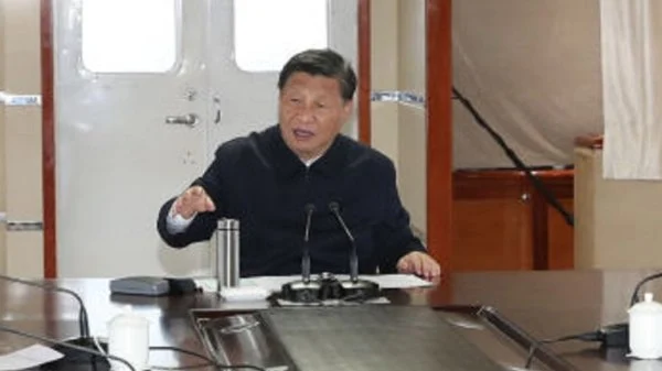 在船上,习近平自带一个保温杯,而其他随行官员用的是当地为他们准备的普通茶杯。(图片来源:视频截图)