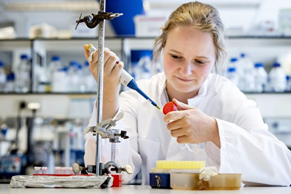 2020年5月,荷兰阿姆斯特丹一家实验室,研究者在研发中共病毒疫苗。T (KOEN VAN WEEL/ANP/AFP via Getty Images)