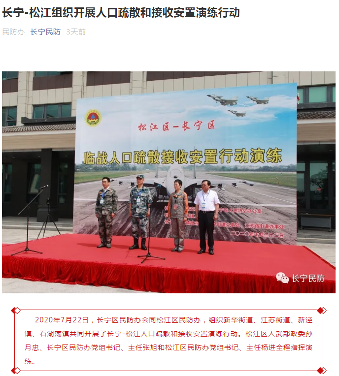 “长宁民防”微信公众号上找到了上海市松江区长宁区今年演练的首发图。