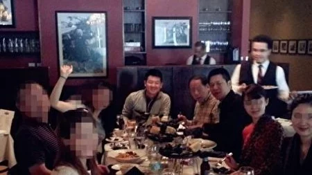 摄于美国一私人会所。居中坐主位者是Michael Xu。(图片来源:大纪元)